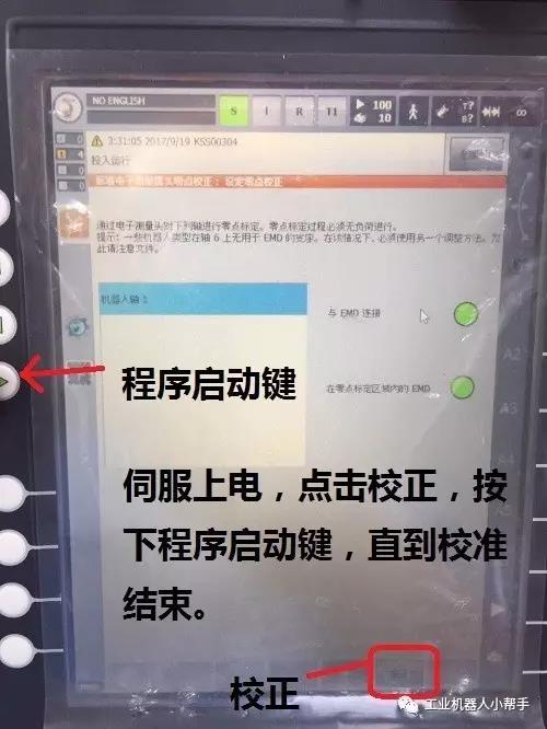 step 6:伺服上電,點(diǎn)擊校正,按下程序啟動(dòng)鍵,直到校正完成;