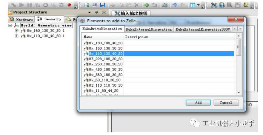 旋轉(zhuǎn)軸配置和上面步驟基本相同,不同的是配置旋轉(zhuǎn)軸不用添加完后把KR60HA_3拖拽到Mx_110_130_40_S0的FLANGE BASE下面