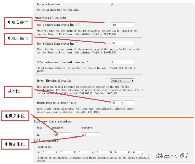 參數(shù)主要有限位,電機轉(zhuǎn)向,軸的類型,減速比等參數(shù)