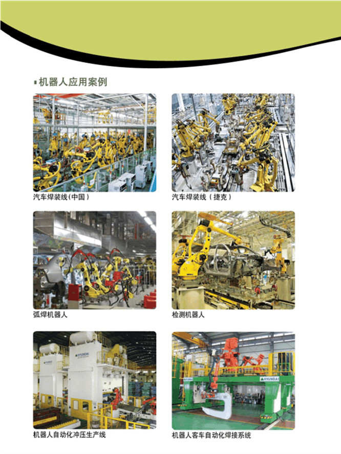 直角坐標(biāo)型工業(yè)機(jī)器人 、 圓柱坐標(biāo)型工業(yè)機(jī)器人、 圓柱坐標(biāo)型工業(yè)機(jī)器人 、多關(guān)節(jié)型工業(yè)機(jī)器人、平面關(guān)節(jié)型工業(yè)機(jī)器人?;『笝C(jī)器人、 激光焊機(jī)器人、電阻焊機(jī)器人、自動(dòng)化焊接機(jī)器人、點(diǎn)焊機(jī)器人、等離子切割機(jī)器人、清潔機(jī)器人、上料機(jī)器人、物料輸送機(jī)器人、材料去除機(jī)器人、包裝機(jī)器人、噴漆機(jī)器人、自動(dòng)鉆孔機(jī)器人、堆跺機(jī)器人、涂層機(jī)器人、去毛刺機(jī)器人、磨銷機(jī)器人、高溫噴涂機(jī)器人等。
